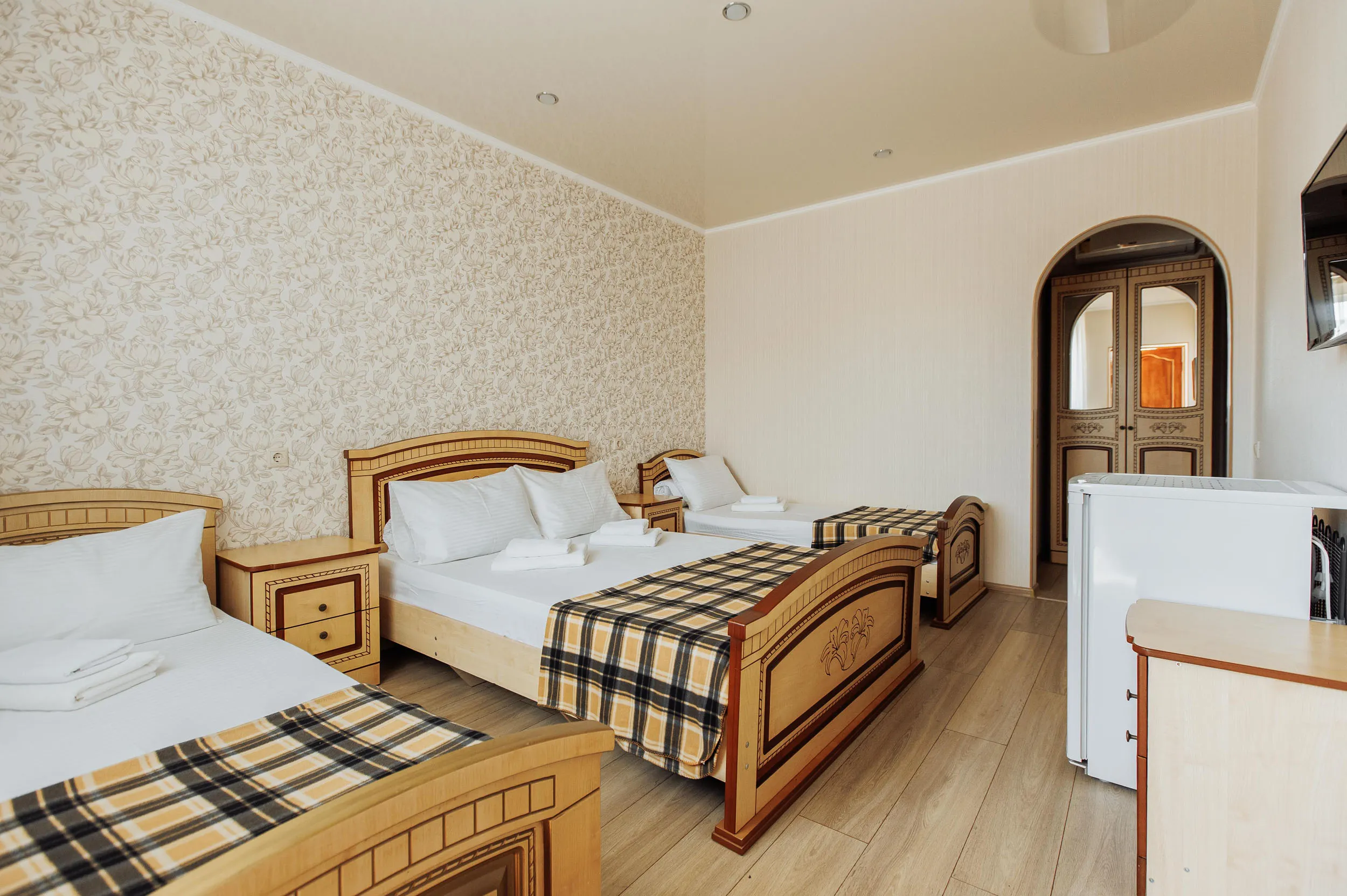 Номер оснащен двуспальной и двумя односпальными кроватями или четырьмя односпальными кроватями, которые обеспечат вам отличный сон и отдых после активного дня. Также в номере предусмотрены кондиционер, холодильник, ЖК-телевизор и собственный санузел с душем.Для вашего комфорта