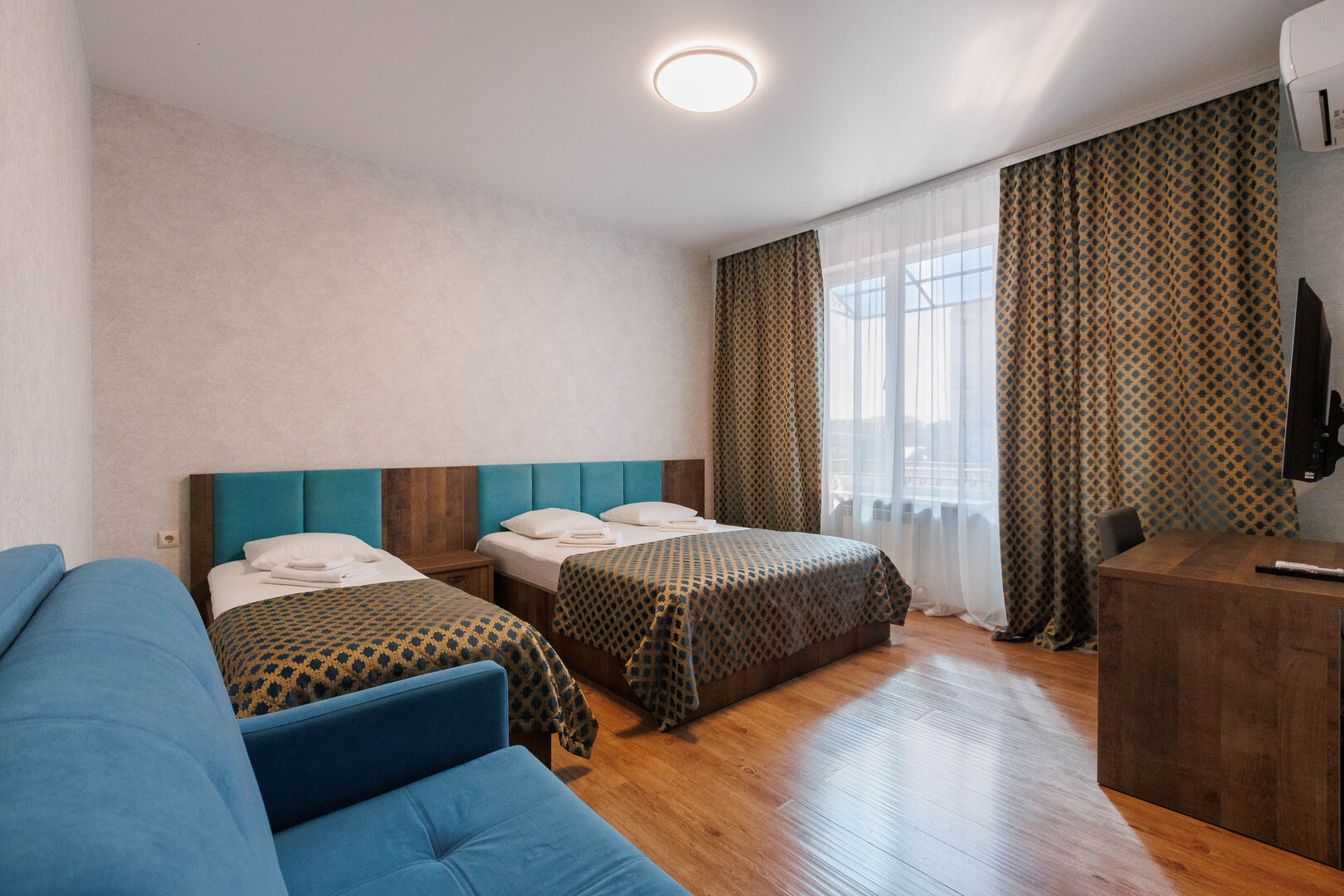 Уютные номера со всем необходимым подойдут для отдыха вдвоём, с семьёй или небольшой компанией. На территории гостевого дома есть подогреваемый бассейн, а рядом находятся рынок, торговые точки, прогулочные зоны и всё, что нужно для удобного и приятного отдыха в Адлере.