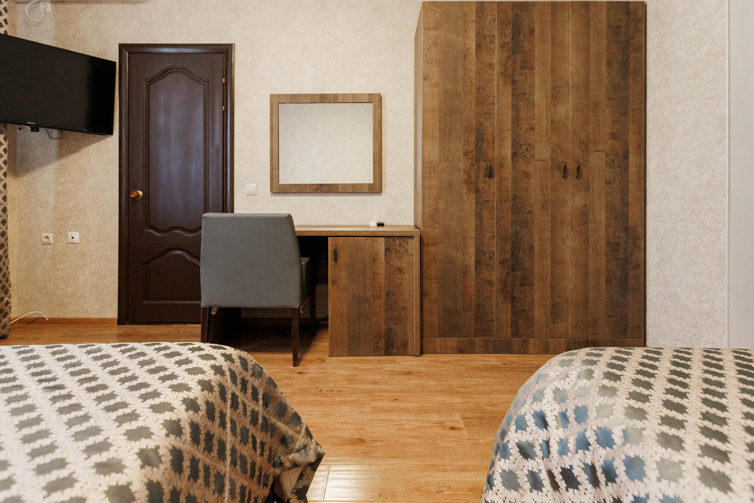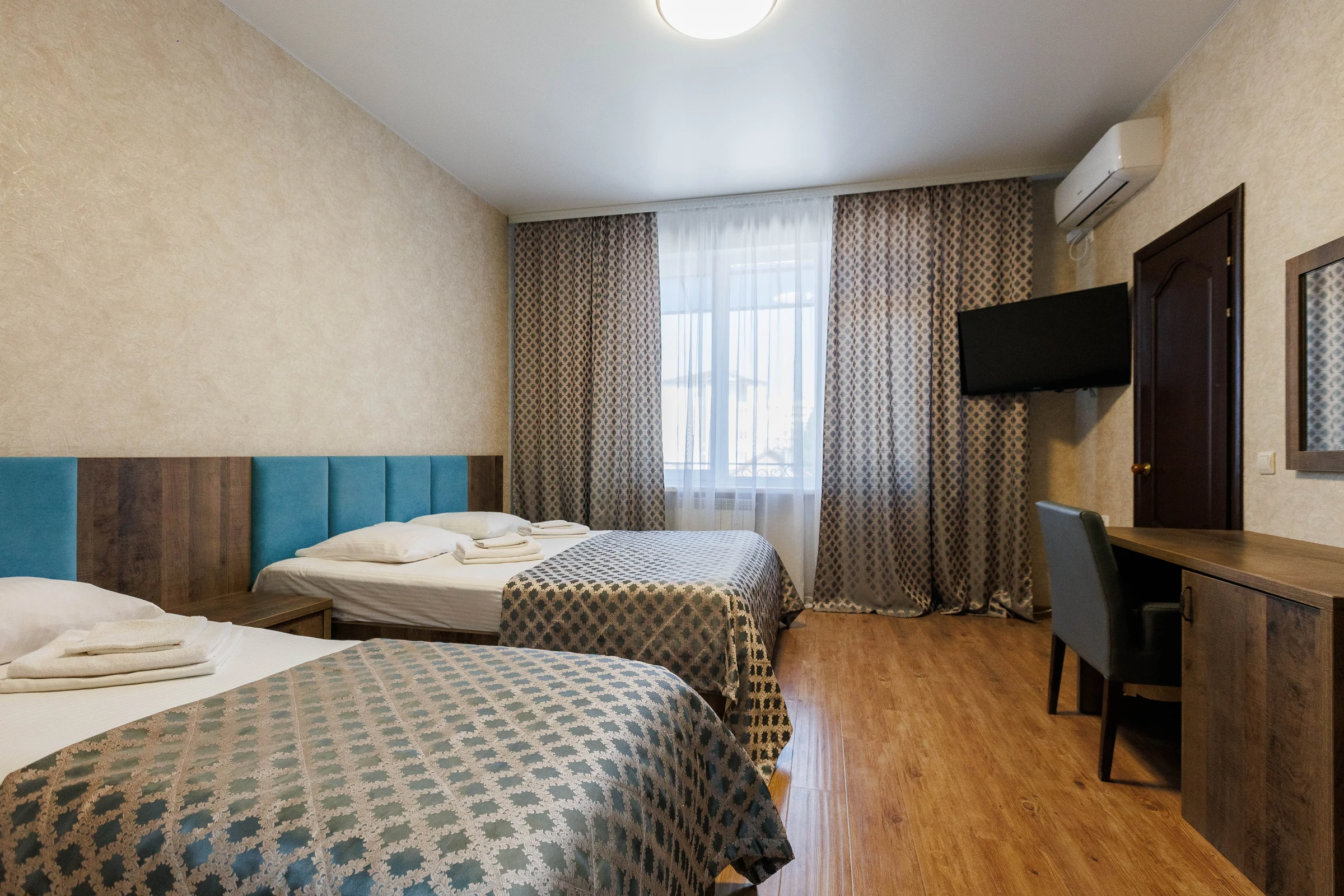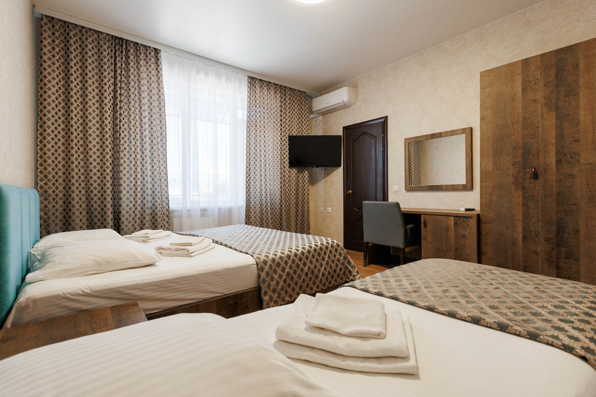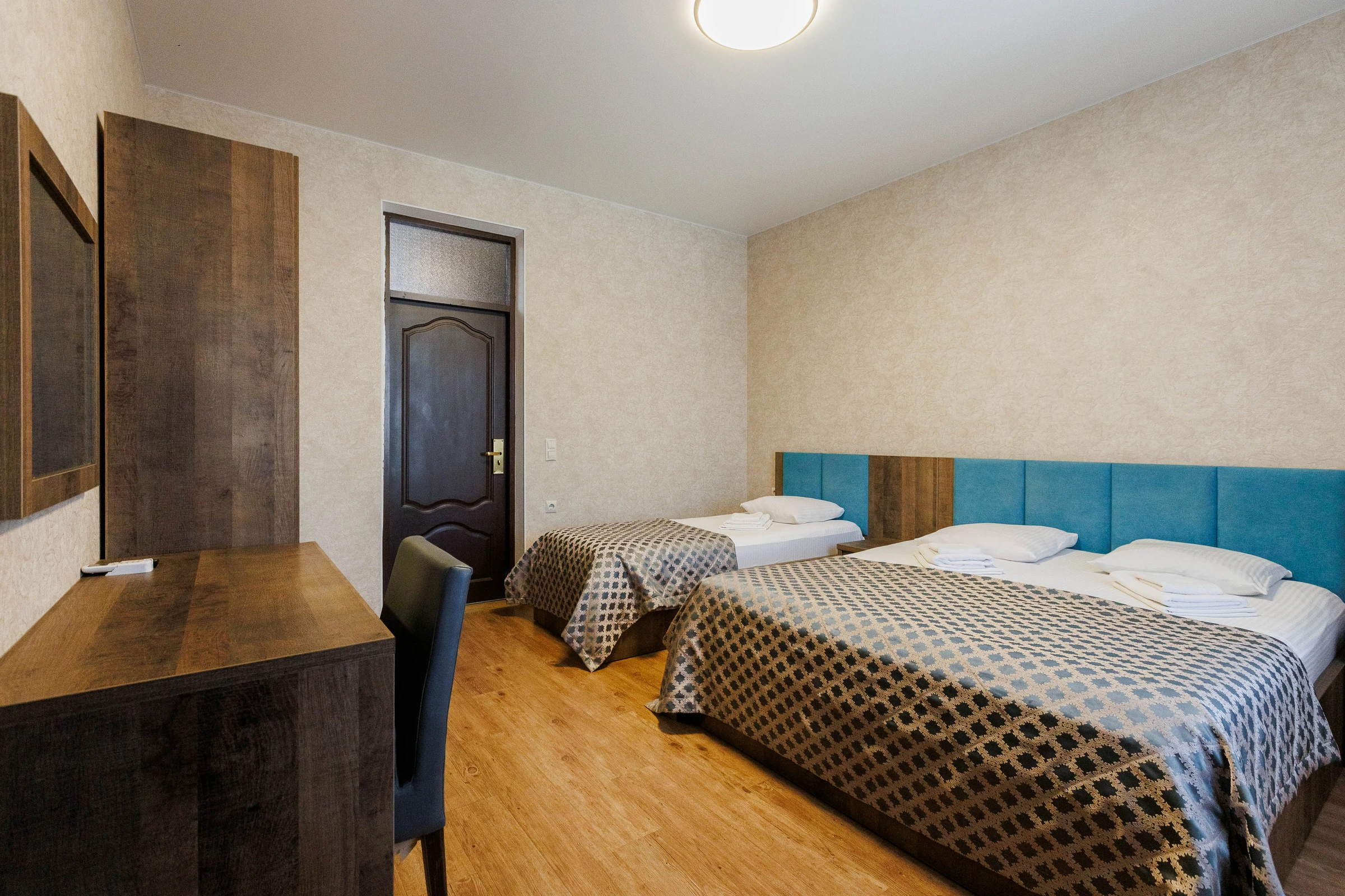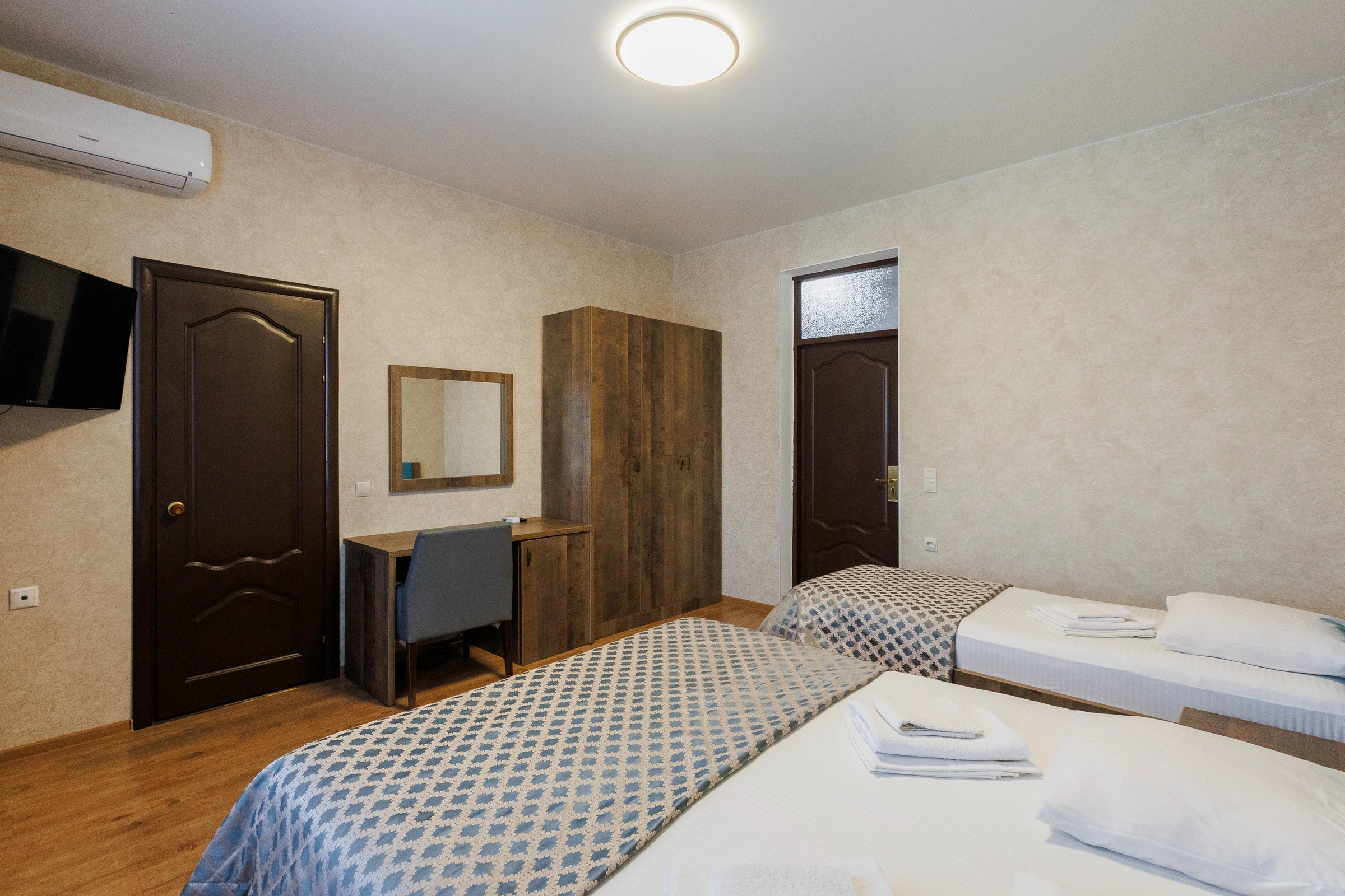Двуспальная и односпальная кровати обеспечат вам отличный сон и отдых после активного дня. Кондиционер, холодильник, ЖК телевизор и санузел с душем обеспечат ваше удобство.Для вашего комфорта