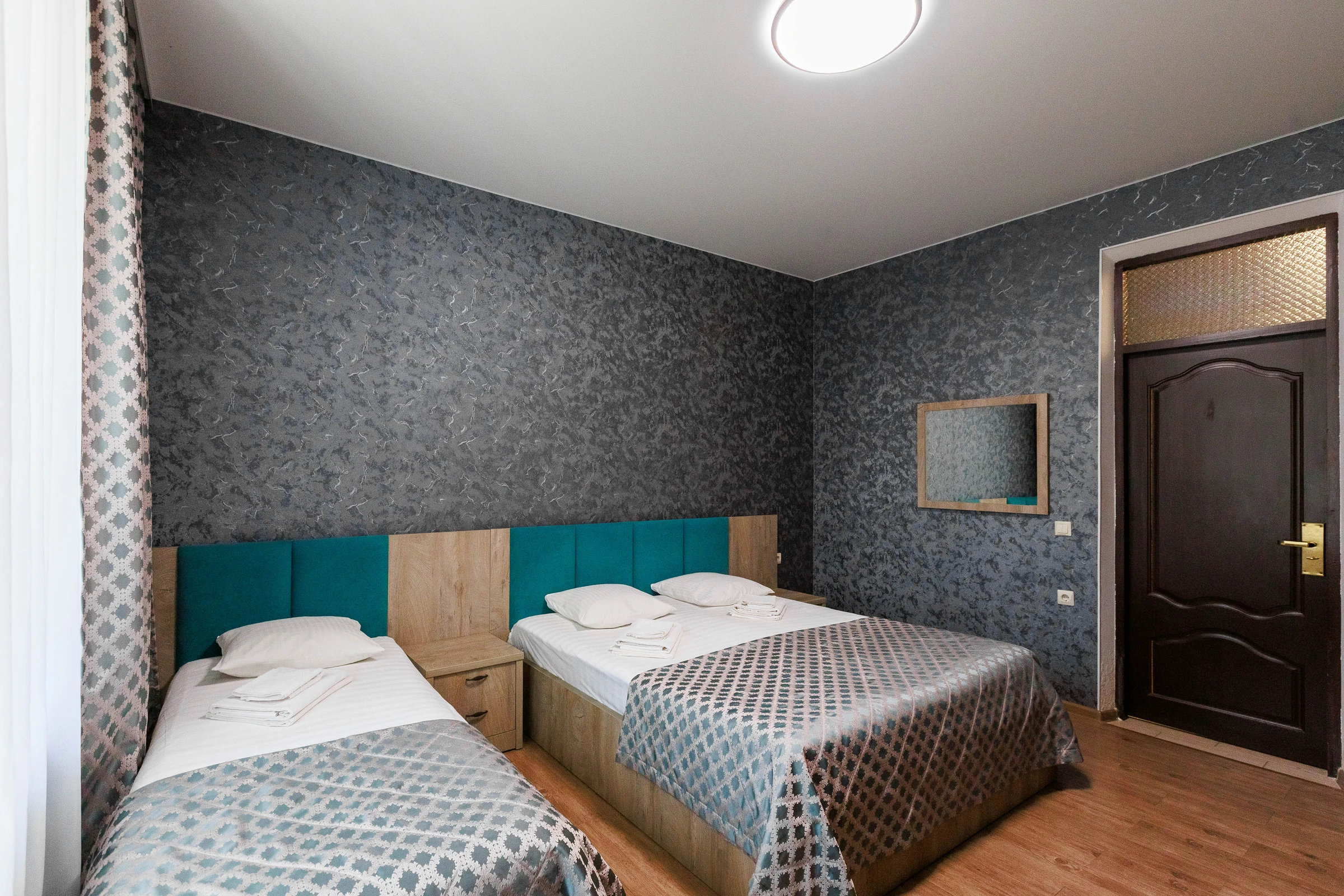 Однокомнатные номера расположены на первом этаже, что обеспечивает удобный доступ без необходимости подниматься по лестнице.Для пары с ребенком