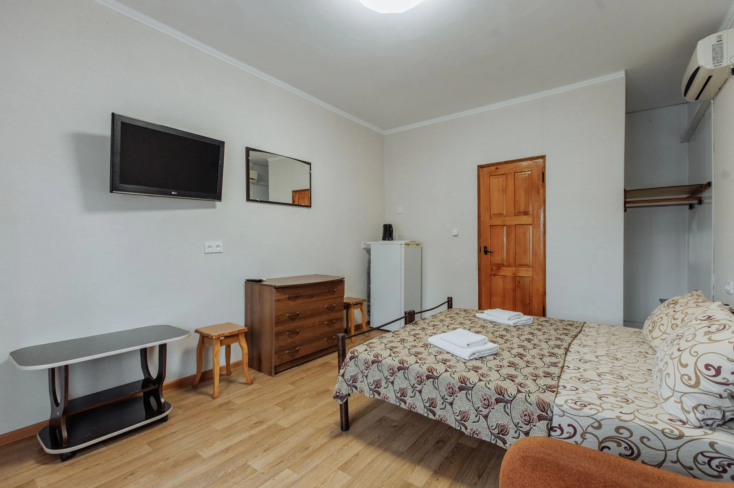 Номер оснащен двуспальной кроватью и мягким диваном, которые обеспечат вам отличный сон и отдых после активного дня. Также в номере предусмотрены кондиционер, холодильник, ЖК-телевизорОбщая терраса